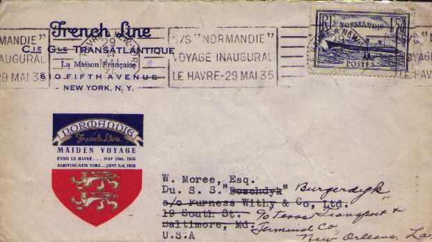 In 1935 the Blue Riband was taken over by the NORMANDIE of the Compagnie Générale Transatlantique. Already on her first voyage from Le Havre to New York she broke all records by sailing from Bishop Rock in England to Ambrose Channel Lightship near New York in 4 days, 3 hours and 14 minutes.